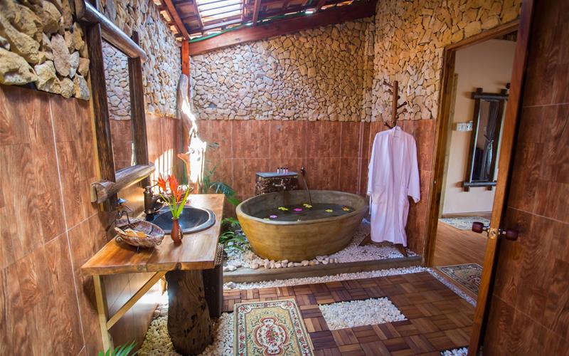 Chez Carole Resort gồm các phòng nghỉ được thiết kế mộc mạc bằng gỗ, đá và gạch thô. Nét cổ kính của các căn hộ, biệt thự như tô điểm thêm cho không gian thanh bình, hiền hòa của một vùng biển vốn đã bình yên. Các phòng nghỉ đều hướng ra vườn hoặc ra biển.