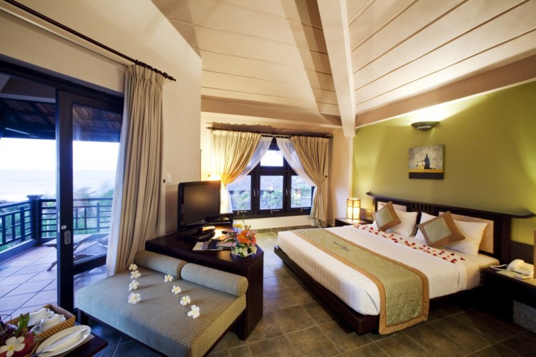 Trải dài theo bờ biển, Tropicana Beach Resort & Spa được thiết kế ấn tượng và trang nhã kết hợp với một màu xanh trong của biển tạo nên một Resort đẹp nên thơ thu hút rất nhiều du khách đến đây. Với 27 phòng khách sạn và 24 phòng cao cấp được trang trí hiện đại và tiện nghi với nhiều phòng hướng biển đón gió từ thiên nhiên. Từ ban công phòng của bạn, buổi tối bạn có thể ngắm trăng và sao trong khoảng không gian thơ mộng. Bạn có thể nghe tiếng sóng vỗ rì rào, tiếng gió xào xạc từ những cây dừa đang đung đưa trong gió tạo thành một bản nhạc du dương. Nếu bạn không muốn ở trong phòng thì bạn có thể ra ngoài cùng người thân của bạn để ngắm cảnh biển đẹp về đêm trong không gian yên bình và lãng mạn.